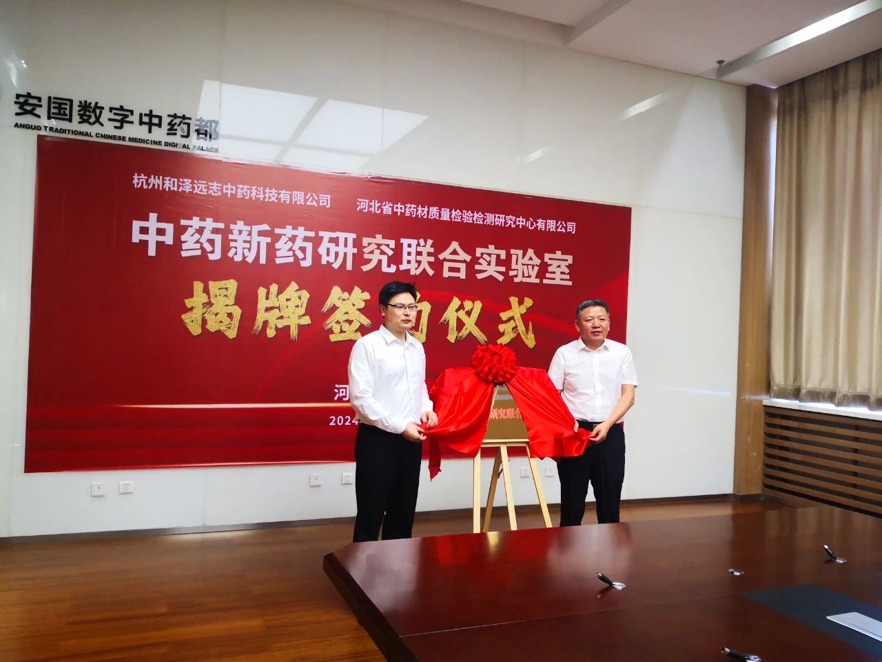 在主持人宣布與和澤人的見證下,和澤醫(yī)藥董事長倪晟、和澤醫(yī)藥常務(wù)副總經(jīng)理趙航共同用雙手揭開浙江和澤醫(yī)藥科技股份有限公司嶄新的華麗篇章。在紅布揭開那一刻,禮花齊放掌聲四起。